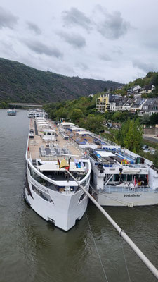 Marvin und Annika heiraten in Köln und wir fahren Samstag gegen 12 Uhr los, um nach dem Hochzeitsessen die Kinder bei der Feier abzuholen und ins Hotel zu fahren. Ich konnte mit dem Wohnmobil auf dem Hotelparkplatz stehen und Regina hat die Kinder zu Bett gebracht und behütet bis Lisa und Oliver von der Feier zurück kamen. Am Sonntag war das Wetter bescheiden und wir sind mit dem Womo nach Köln gefahren. Direkt am Staatenhaus am Rhein haben wir einen Parkplatz bekommen. Euro 4 die Stunde. Im Staatenhaus ,wo sich derzeit die Oper als Spielstätte befindet, war Tag der offenen Tür mit Führungen, Spielstätten für Familien mit Kindern, und auch das Ensemble hatte einige Auftritte. Eintritt war frei. Die Oper , die sich normal am Offenbachplatz in Köln befindet, wir seit 2016 komplett saniert. Daher ist seit diesem Termin das Staatenhaus zur Oper umgebaut worden. Wenns gut geht soll die Oper im 4.Quartal 2025 fertig gestellt sein. Ist aber nicht sicher. Die Kosten der Sanierung laufen aus dem Ruder da der Bau unter Denkmalschutz steht. Man wäre glücklich wenn die nunmehr prognostizierten 1,5 Mrd. Euro eingehalten werden können. Für mich ein Wahnsinn, obgleich ich Kunst und Musik für sehr wichtig in unserer Gesellschaft halte. Die Backstageführung war hoch interessant, auch die eine Stunde lange musikalische Auftritt mit Nachwuchskünstlern war super und wir waren sehr froh dass wir hingegangen sind. Dann sind wir noch in den Kölner Dom, mit seinem Prunk und der Möglichkeit bargeldlos zu spenden. Wenn die katholische Kirche auch komplett gesellschaftlich rückständig ist, hier sind sie modern unterwegs. Ein Gaffel Kölsch gabs anschl. natürlich auch. Auch einen Polizeieinsatz mit Hubschrauber fand statt, es wurde gemeldet dass ein Person in den Rhein gefallen wäre, war aber wohl ein Fehlalarm. Wir sind dann zum Übernachten weiter gefahren nach Mayschoß ins Ahrtal. Dort sind alle mit dem Aufbau der Häuser und Brücken nach der Hochwasserkatastrophe noch immer beschäftigt. Wird sicher noch einige Zeit dauern. Dann gings weiter an die Mosel nach Cochem. Dort gibt es den ehemaligen geheimen Bundesbankbunker den ich unbedingt anschauen wollte.